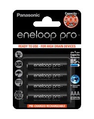 Nabíjecí baterie z řady Eneloop Pro jsou navrženy pro užívání v těch energeticky nejnáročnějších zařízeních napájených prostřednictvím tužkových AAA baterií. Nabíjecí baterie Panasonic Eneloop Pro AAA poskytují jak více energie pro Vaše zařízení, tak i jistotu, že při skladování si baterie udrží až 85% své kapacity po dobu jednoho roku.