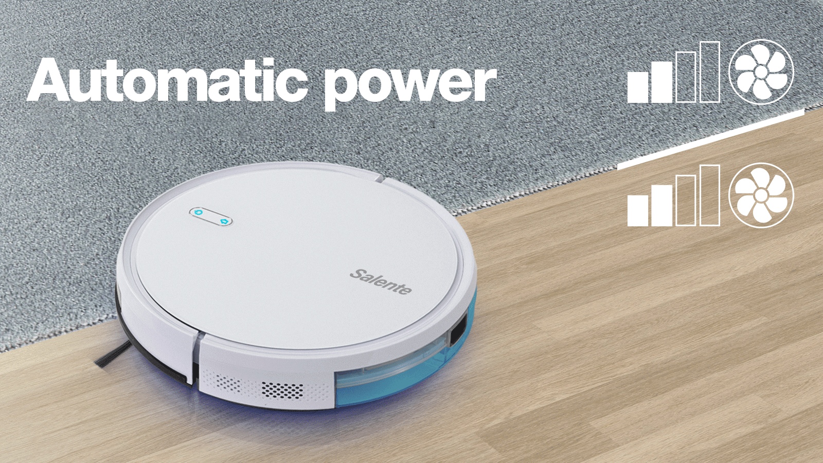 Vysavač automaticky detekuje typ podlahy a přizpůsobuje mu sací výkon. Po najetí na koberec se výkon zvýší pro účinnější úklid a po návratu na dlažbu nebo plovoucí podlahu se výkon vrátí na původní hodnotu.