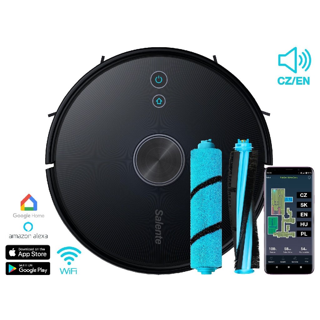 Intuitivní aplikace Salente umožní ovládat vysavač kdekoliv. Informuje vás o aktuálním stavu vysavače, lze zde spustit různé režimy úklidu, nastavit úrovně vysávání nebo vytírání, plánovaný úklid nebo dobu kdy nechcete být rušeni. Mobilní aplikace je v českém i slovenském jazyce a je určena pro operační systémy Android a iOS.