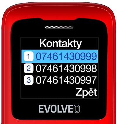 • 4 velká tlačítka pro uložení hlavních kontaktů