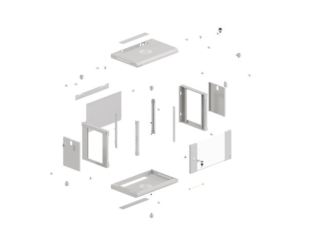 Prosklené dveře na přední straně a přístup z boků a zadní části skříně prostřednictvím odnímatelných bočních panelů a odnímatelného zadního panelu znamenají vysokou funkčnost i ochranu zařízení před náhodným vypnutím nebo poškozením. Kromě toho je možné skříň namontovat přímo na stěnu (pomocí otvorů v rámu) nebo pomocí speciální lišty, což výrazně usnadňuje instalaci v různých podmínkách.