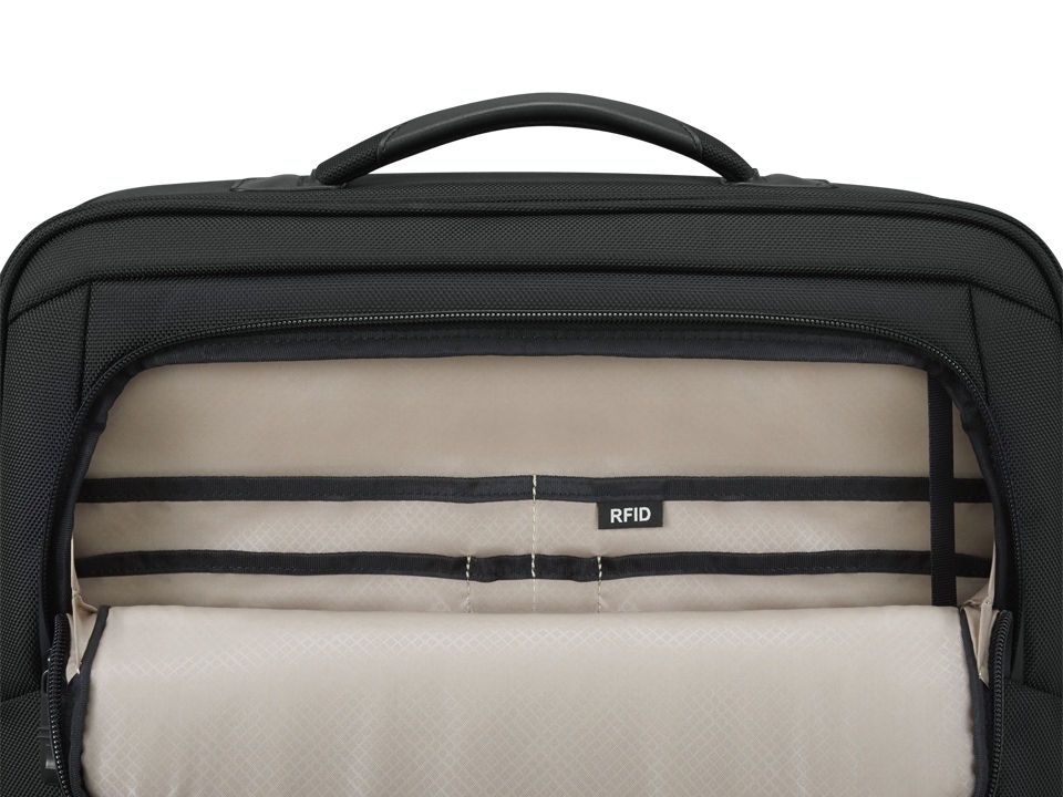 *Hlavní přihrádka je vybavena plnohodnotnou pracovní stanicí a úložnými kapsami na příslušenství a další drobné předměty, včetně kapsy s blokováním RFID a klíčenky