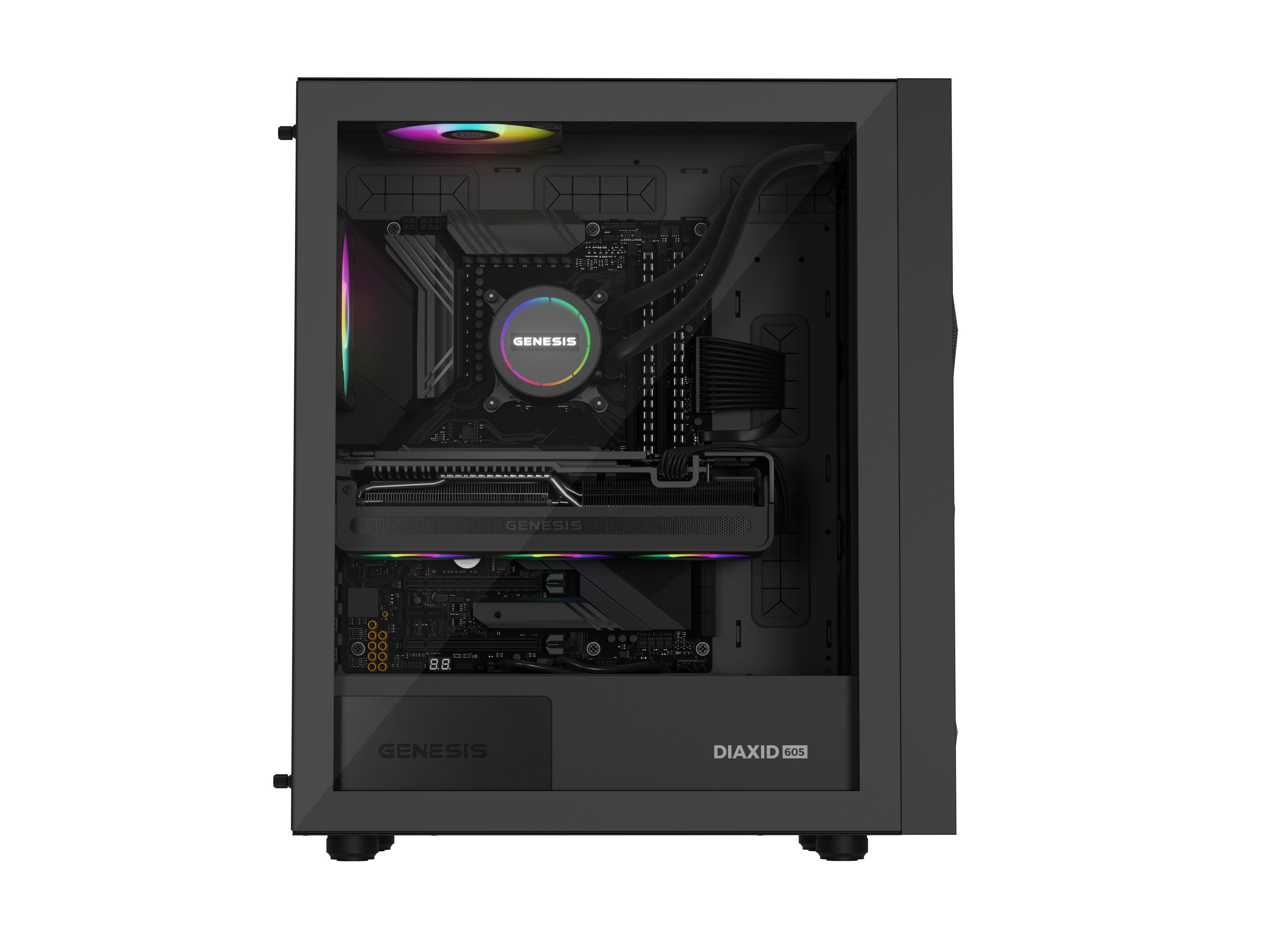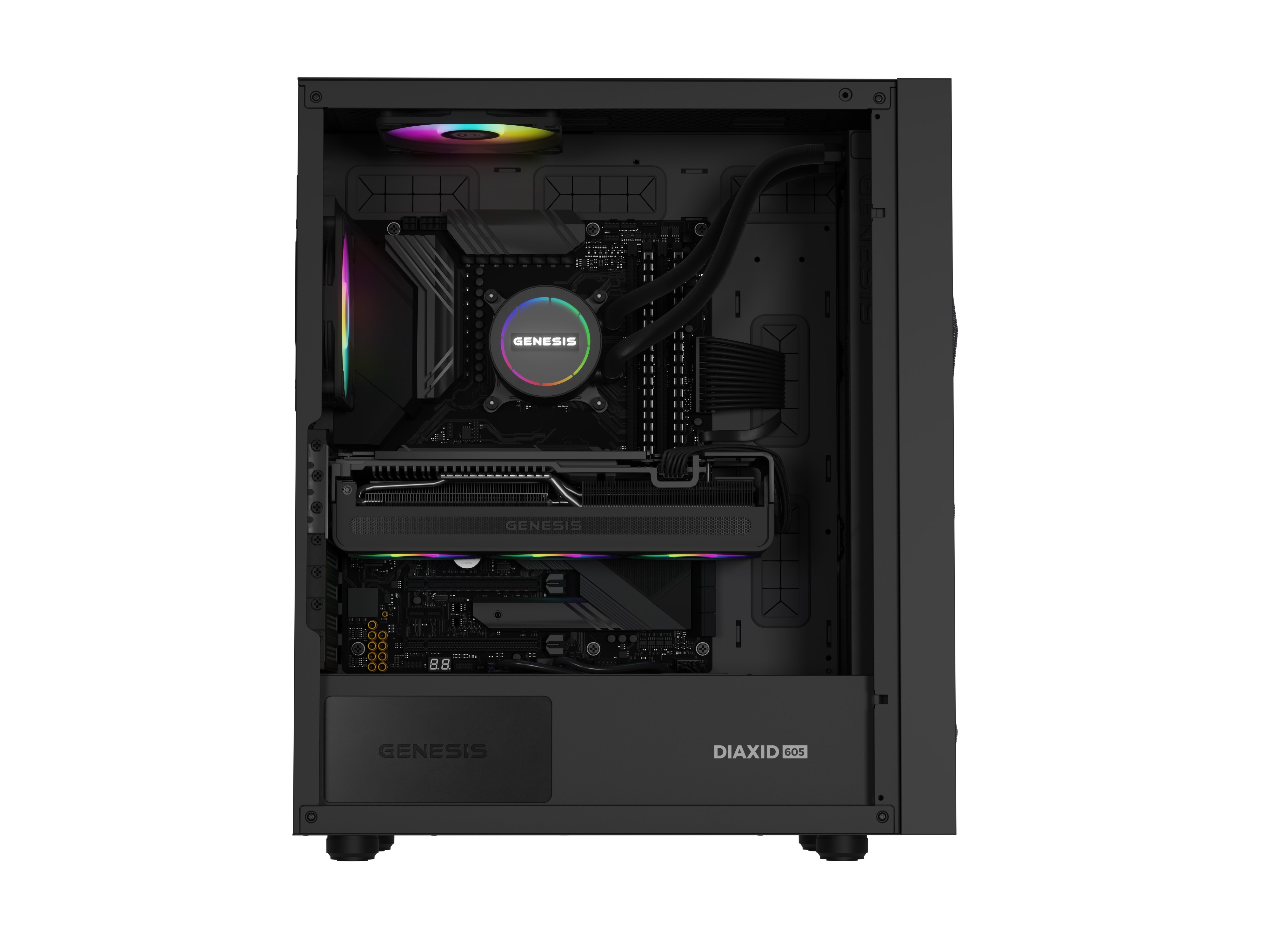 Matná povrchová úprava radiátoru s elegantním vyraženým logem GENESIS se bude dobře hodit k ostatním prvkům vaší sestavy a vytvoří tak soudržný, poutavý celek.