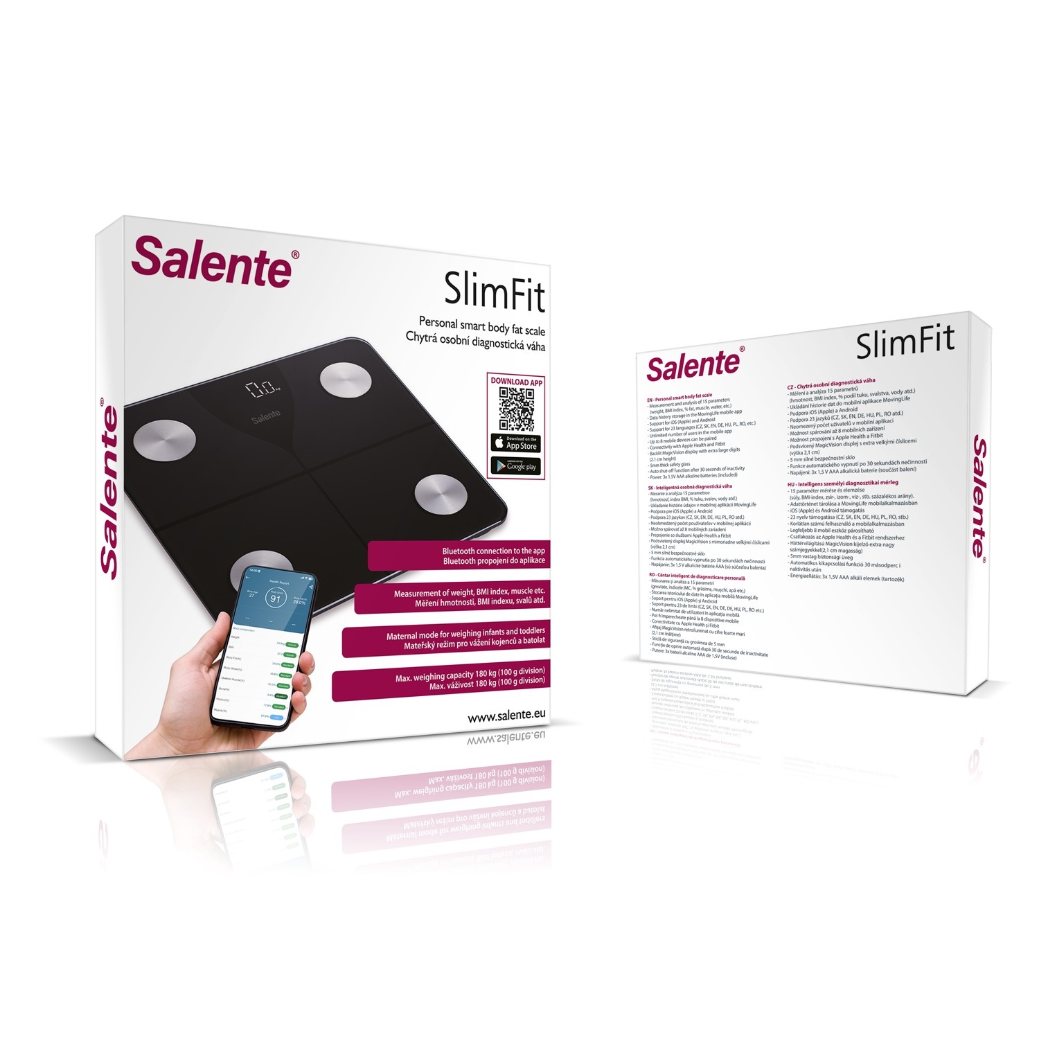 • Salente SlimFit, chytrá osobní diagnostická fitness váha, Bluetooth, bílá (PartNo: SLIMFIT-WH)