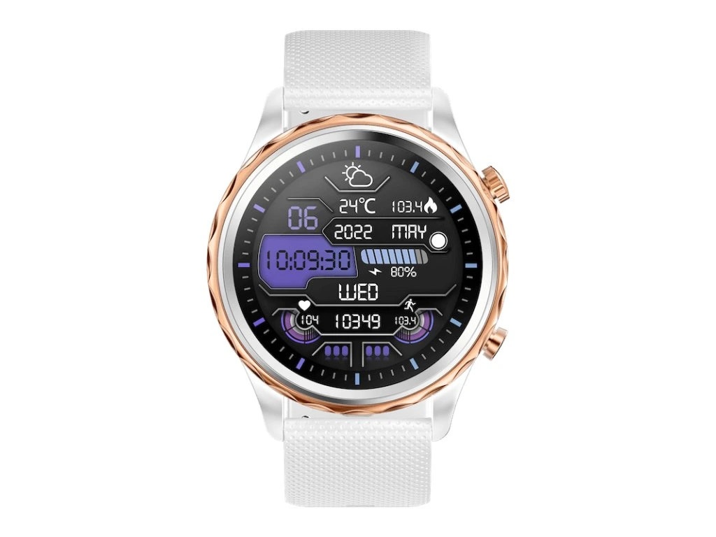 Moderní, nadčasové fitness hodinky CARNEO Queen HR+ v bílém provedení se zlatorůžovou korunkou a bílou, na dotek velmi příjemnou, silikonovou páskou a barevným SUPER AMOLED displejem s vysokým jasem a funkcí trvalého zobrazení času monitorují vaši denní aktivitu, úroveň stresu, ale lze je spárovat s mobilním telefonem a upozornit vás na příchozí hovor nebo SMS. Hodinky umožňují telefonovat, aniž byste museli telefon vyndat z tašky, díky vestavěnému mikrofonu a reproduktoru až do vzdálenosti 10 m od telefonu. Jejich bezchybné kovové tělo s nadčasovými outdoorovými křivkami je tak návykové, že je po prvním nošení nebudete chtít sundat ze zápěstí. Mimořádně odolné minerální sklo chrání křišťálově čistou obrazovku před poškrábáním.