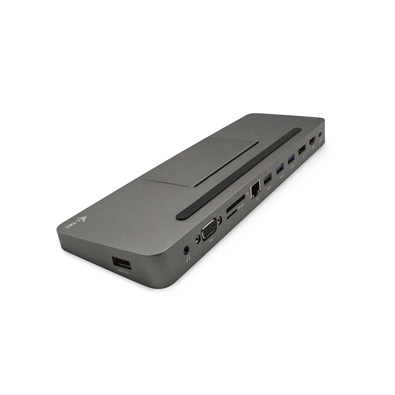 Ergonomická kovová dokovací stanice USB-C, která podporuje až 3 externí monitory. Stanice je kompatibilní s jakýmkoliv notebookem vybaveným portem USB-C nebo Thunderbolt 3 (60cm integrovaný kabel je dostatečně dlouhý pro připojení všech notebooků s obrazovkou do velikosti 15“). Tento dok nabízí 4x USB port, spolehlivé a rychlé připojení do podnikové sítě díky integrovanému LAN portu a napájení až 85W. Díky svému provedení je možné ji použít zároveň jako podstavec pro notebook.