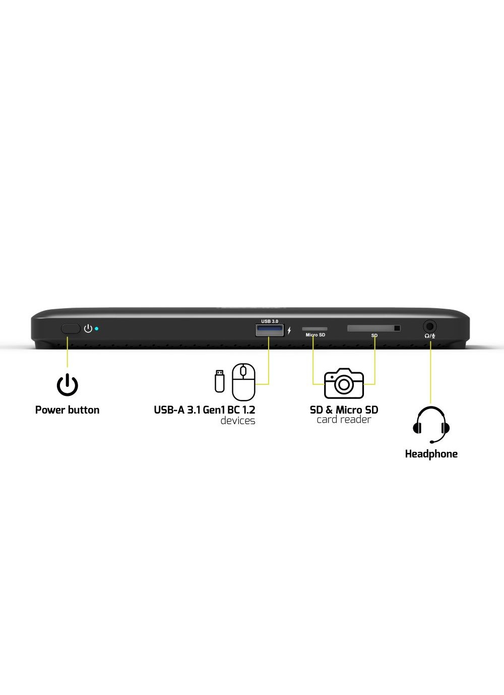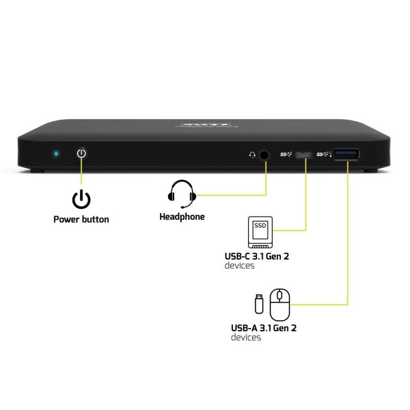 Připojte až 11 periferií: 2x DisplayPortTM, 1x HDMI, 1x Ethernet, 4x USB-A 3.1 Gen 1 (vč. 1 BC 1.2), 1x Combo Jack 3,5 mm, Micro SD a čtečka SD karet