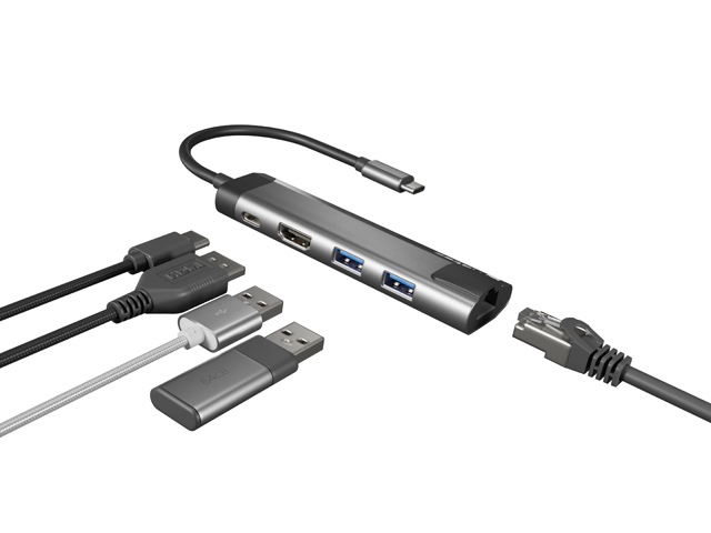 - Multifunkční adaptér Type-C s pěti základními porty