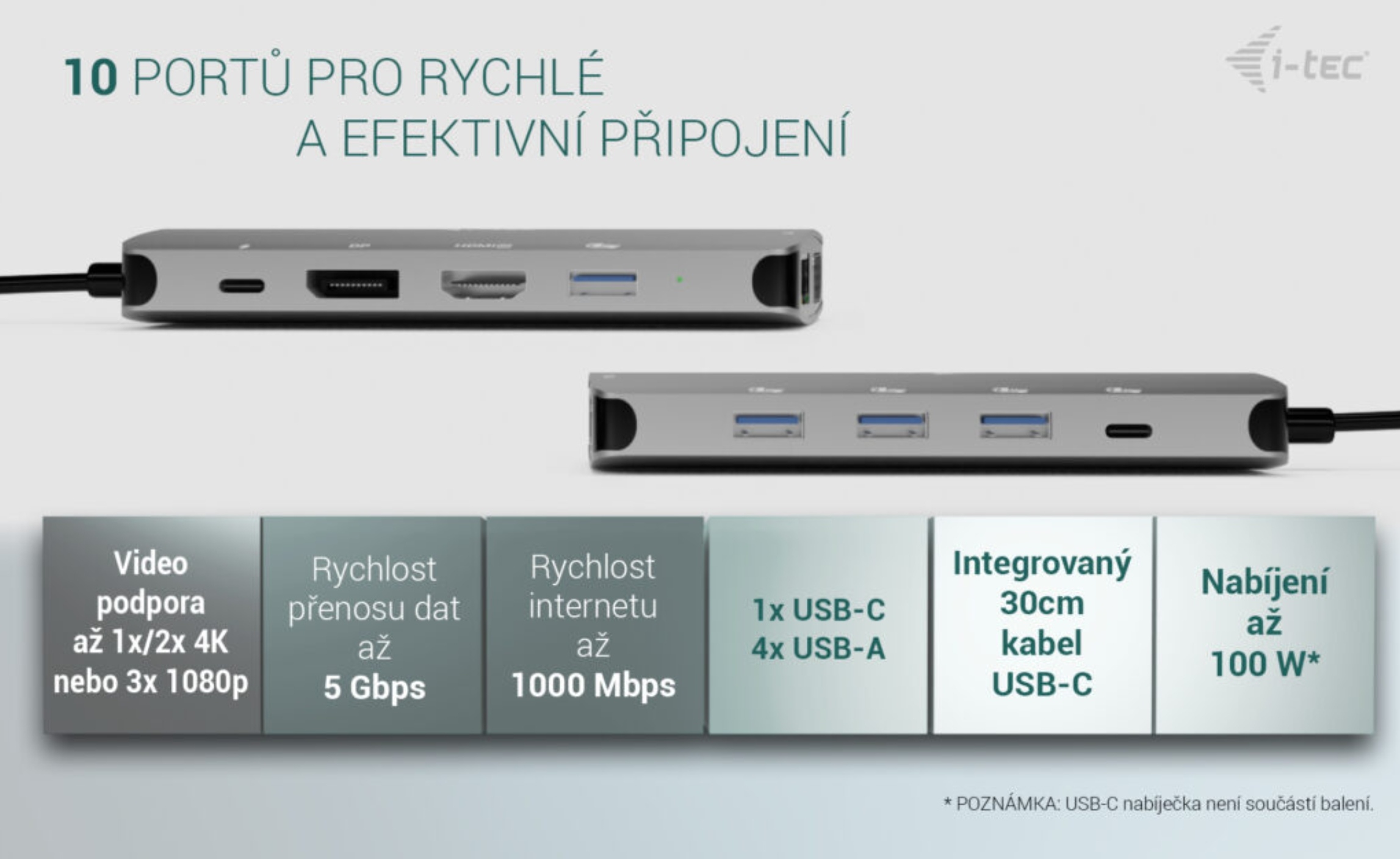 • Power Delivery až 100 W – napájení notebooku přes USB-C