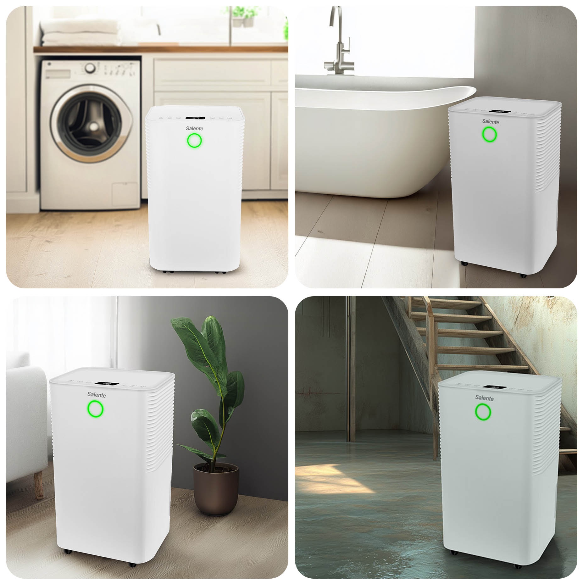 Salente WaterStar12 je skutečným hrdinou v boji s vlhkostí. Tento moderní odvlhčovač můžete využít v jakékoliv místnosti do velikosti 60 m2 – efektivně si poradí s problémy, jako jsou plísně, zatuchlý vzduch, orosená okna nebo nadměrná vlhkost způsobená přetápěním.