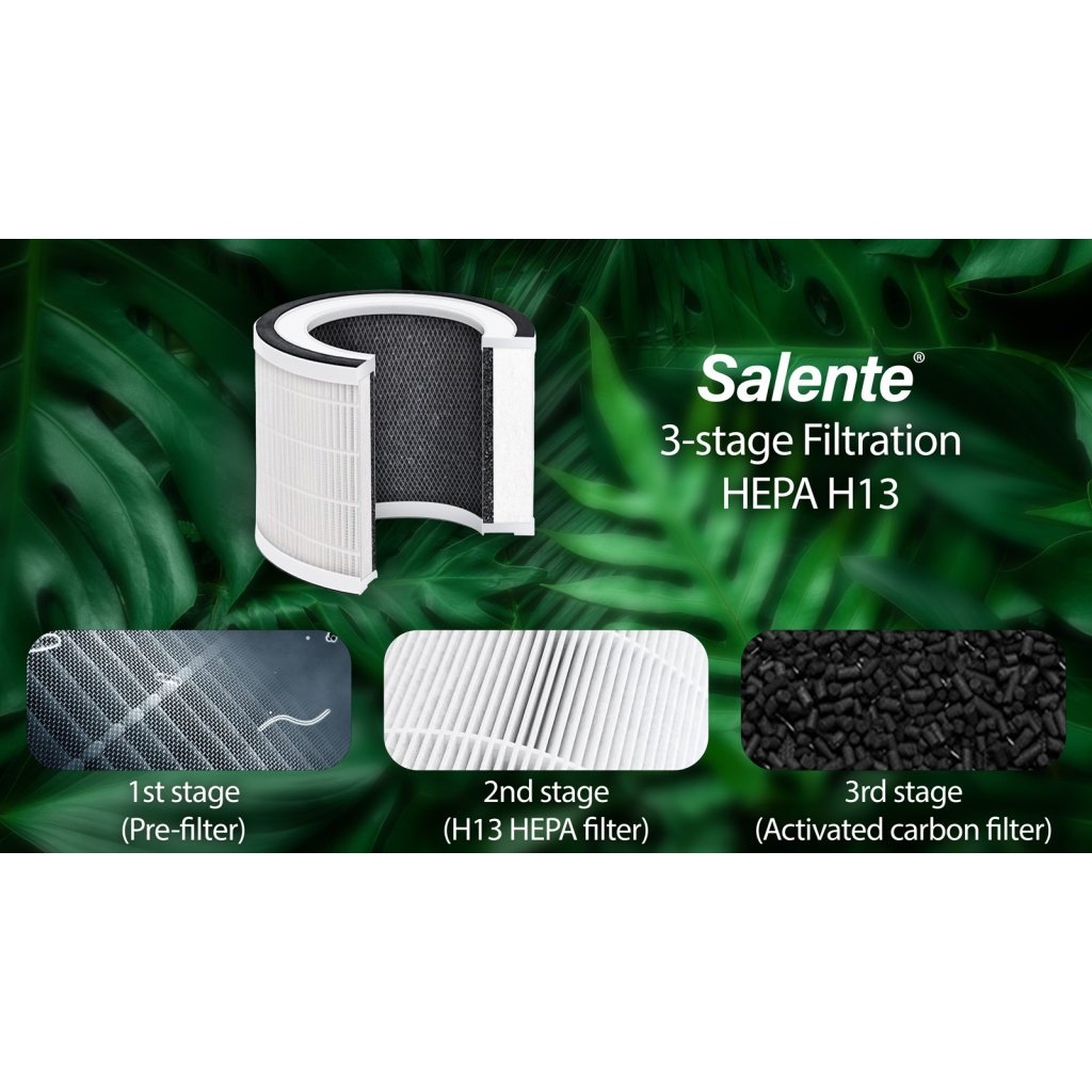 Srdcem chytré čističky vzduchu Salente MaxClean je 3vrstvý oválný filtr garantující nejlepší možnou filtraci splňující i ty nejpřísnější požadavky pro alergiky.