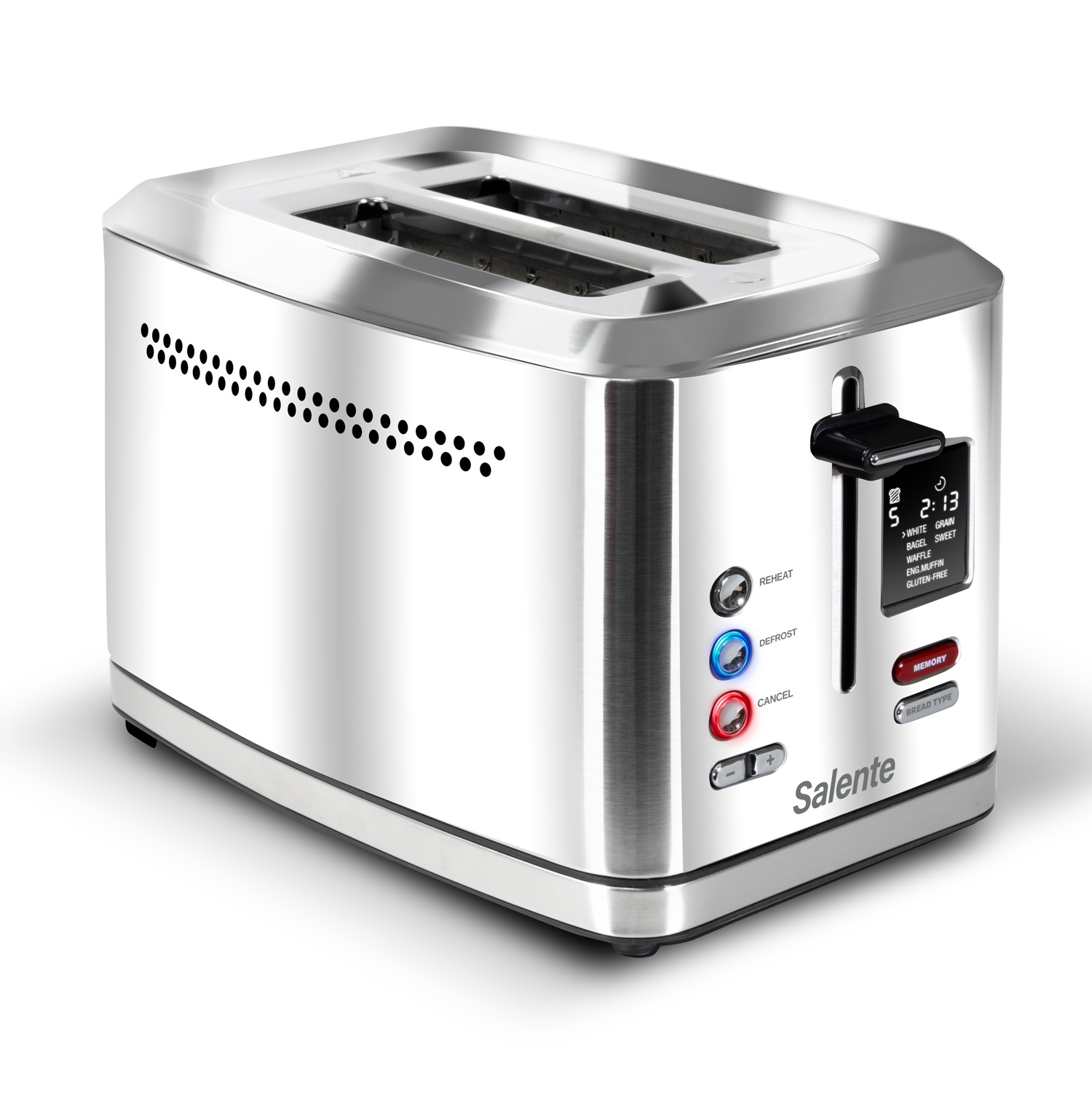 S digitálním displejem a paměťovou funkcí se opékání pečiva stane zábavou. Topinkovač má v paměti uložených 7 různých druhů pečiva, takže stačí jen jedním dotykem pohodlně zvolit ten správný a o nic dalšího se nemusíte starat. Topinkovač sám nastaví dobu opékání potřebnou pro dané pečivo. K dispozici jsou navíc 4 uživatelské paměťové pozice, kam si můžete uložit svůj oblíbený druh pečiva a intenzitu opečení – pak už jen stačí vybrat jednu ze 4 uložených předvoleb a je hotovo.