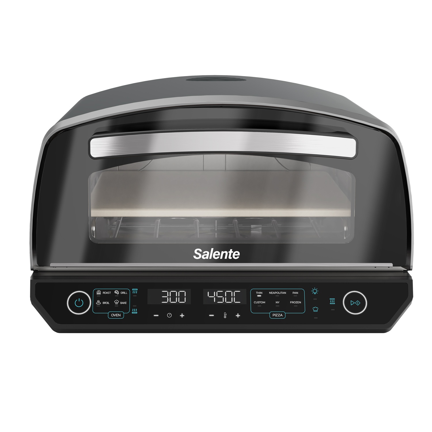 Pizza pec Salente Vulcano není jen mistr na pizzu – díky vestavěné funkci grilu ji využijete po celý rok na nespočet dalších způsobů. Nabízí režimy Broil, Roast, Bake a Grill, takže si snadno připravíte nejen dokonale propečenou pizzu, ale i šťavnaté maso, dozlatova zapečenou zeleninu, křupavé toasty nebo domácí pečivo.