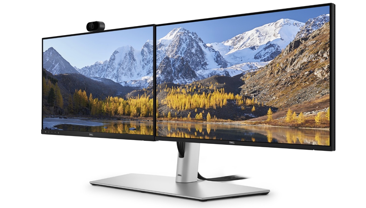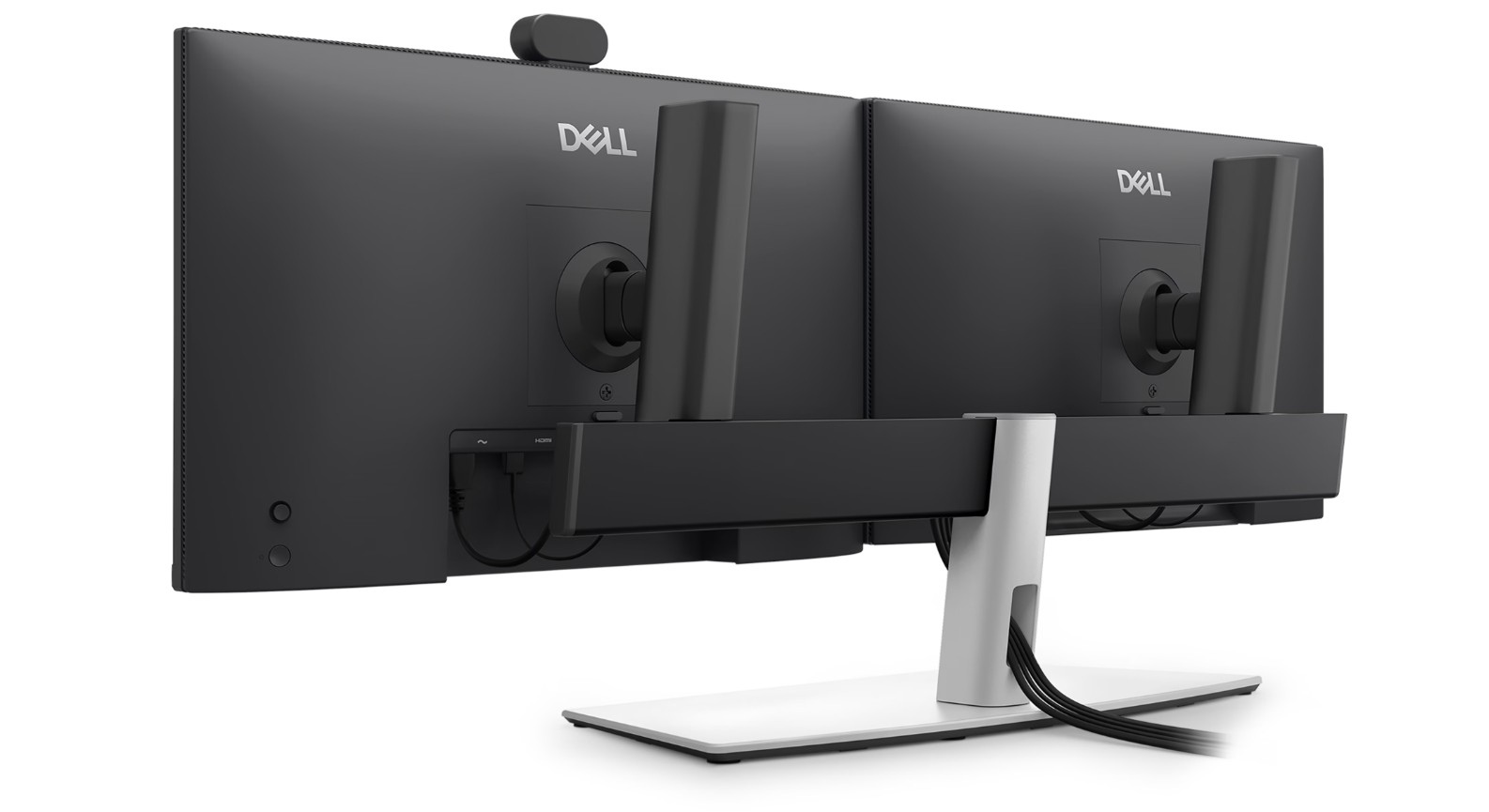Maximalizujte prostor na stole pomocí elegantního stojanu pro dva monitory, který je navržen pro větší pohodlí.