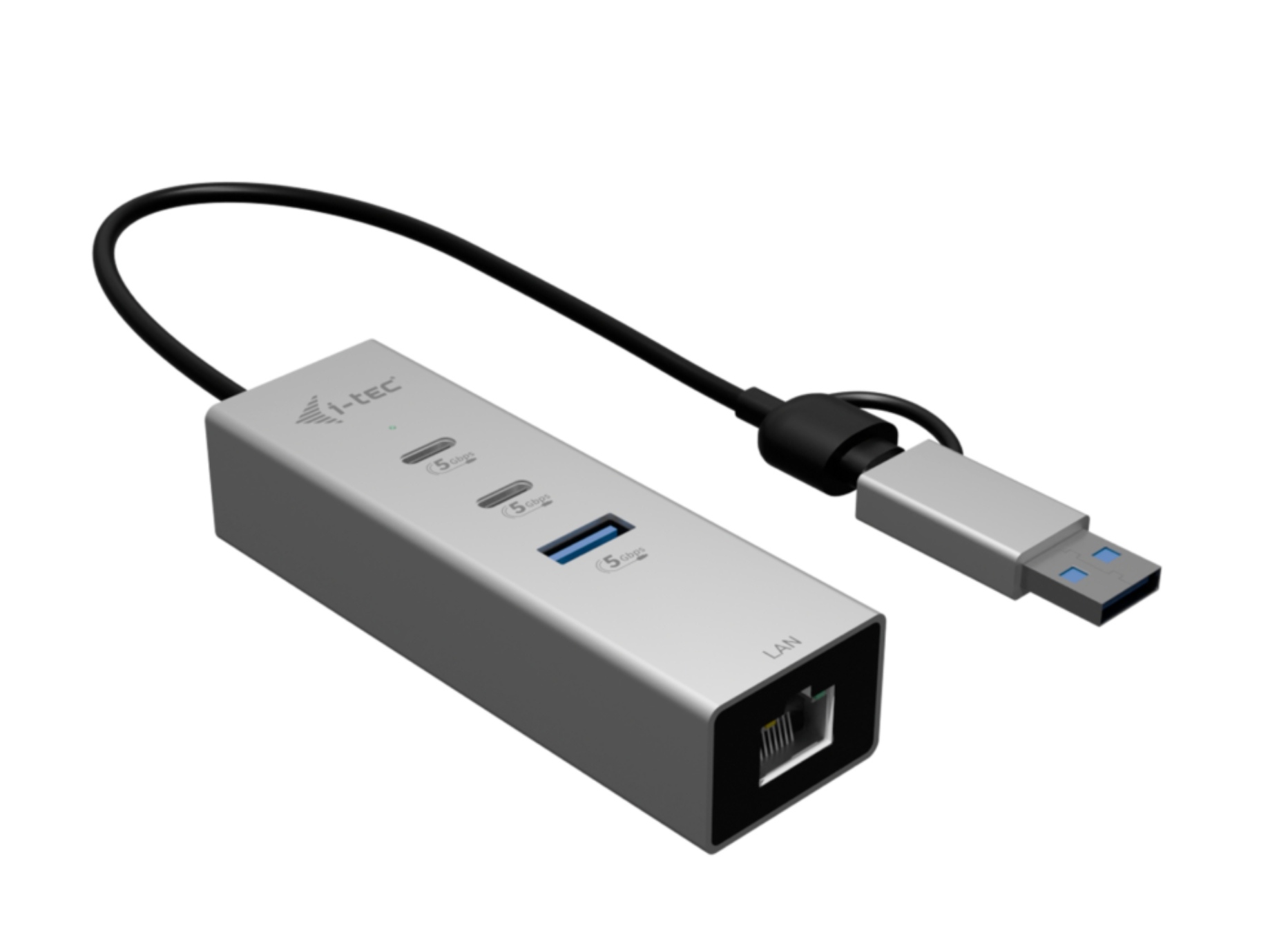 • Kompaktní USB-C / USB-A hub s integrovaným kabelem – flexibilní připojení k široké škále zařízení