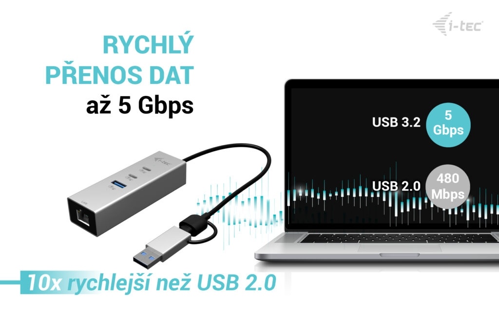 • 5 Gigabit Ethernet – výrazně rychlejší a stabilnější síťové připojení než standardní Gigabit LAN