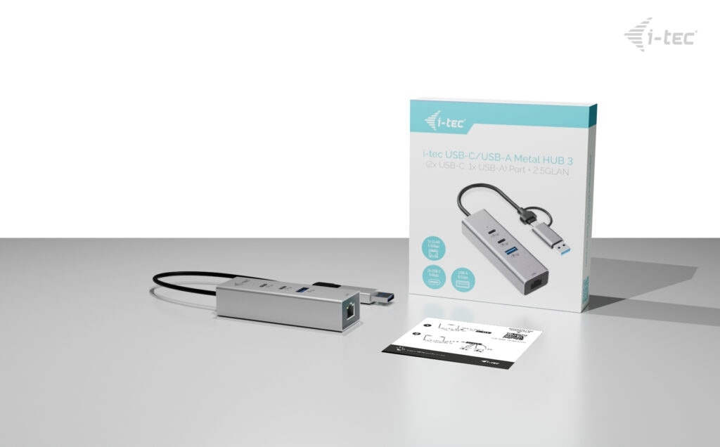 Hub nabízí dva USB-C a jeden USB-A port pro připojení periferií, jako jsou externí disky, klávesnice nebo další příslušenství. Nechybí ani rychlý 2.5 Gigabit Ethernet port, který poskytuje výrazně vyšší rychlost a stabilitu připojení oproti běžnému Gigabit LAN – ideální pro práci s velkými daty, online meetingy i streamování.