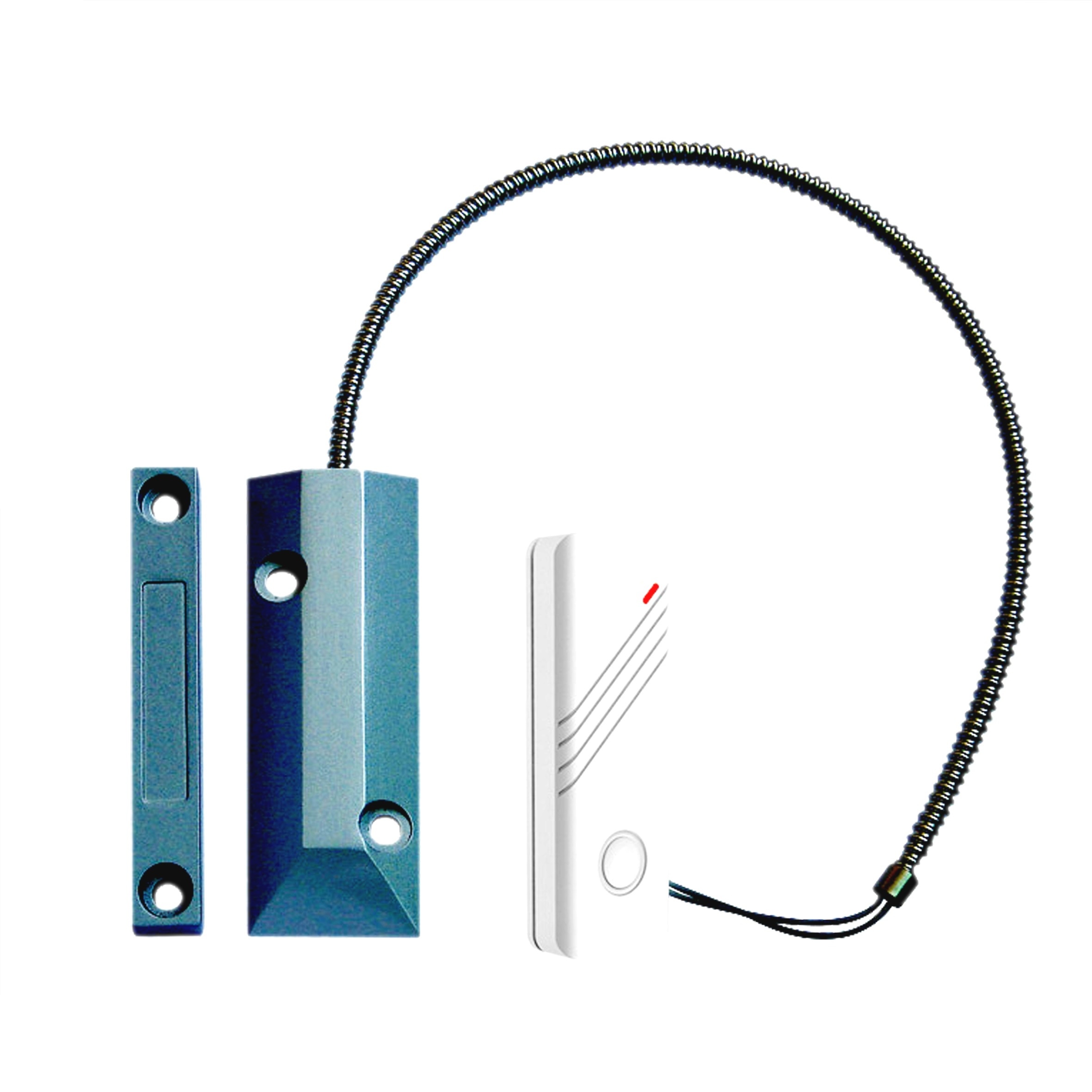 - detekce na základě oddálení dvou magneticky propojených částí, jedna část je umístěna na rámu vrat/dveří/oken a druhý díl na vratech/dveřích/oknech, jakmile se oddálí o více jak 2 cm dojde k rozepnutí kontaktu a bude vyslán signál,