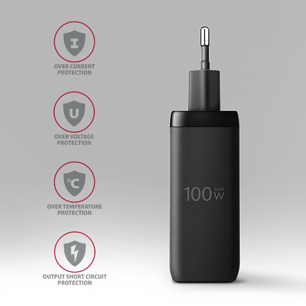 Kompaktní velikost a vysoký výkon je daný využitím nové GaN technologie. Použité součástky s Nitridem Galia pracují s vysokou účinností, což umožňuje dosahovat vysokých výkonů při malé velikosti. Nabíječka je vybavena dvěma výstupy Power Delivery 3.0 / Quick Charge 4+ USB typu C a jeden Quick Charge 3.0 USB typu A, což umožňuje rychlé nabíjení nejen smartphonů a tabletů, ale také notebooků.