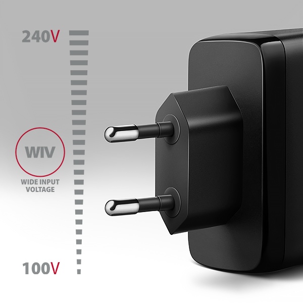 • Wide Input Voltage - funkce širokého rozsahu vstupního napětí, chrání adaptér proti podpětí a přepětí na vstupu a umožní použití více "národních napájecích standardů".