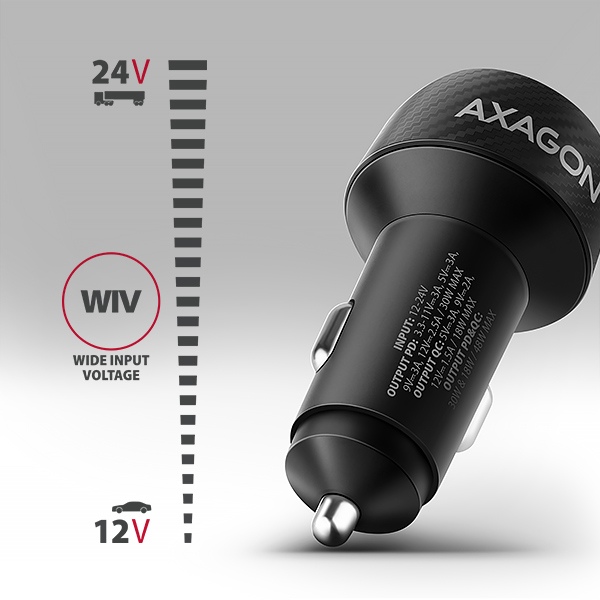 • vstupní napětí DC 12V-24V (funkce WIV), podporuje osobní i nákladní automobily