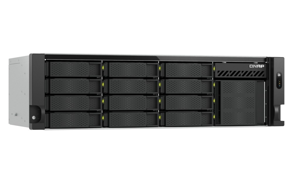 TS-h1655XeU-RP 10GbE NAS nabízí vysoký výkon v kompaktním 3U šasi s krátkou hloubkou (29,6 cm/11,6 palce), což je ideální pro serverovny s omezeným prostorem. TS-h1655XeU-RP je poháněn 8jádrovým procesorem Intel a disponuje 12 3,5palcovými pozicemi SATA se 4 sloty E1.S/M.2 PCIe NVMe. Nabízí flexibilní hybridní úložiště pro náročné úlohy, jako je virtualizace (VMware a Hyper-V) a datově náročné aplikace. Redundantní napájecí zdroje navíc pomáhají zajistit spolehlivost systému pro bezproblémový provoz.