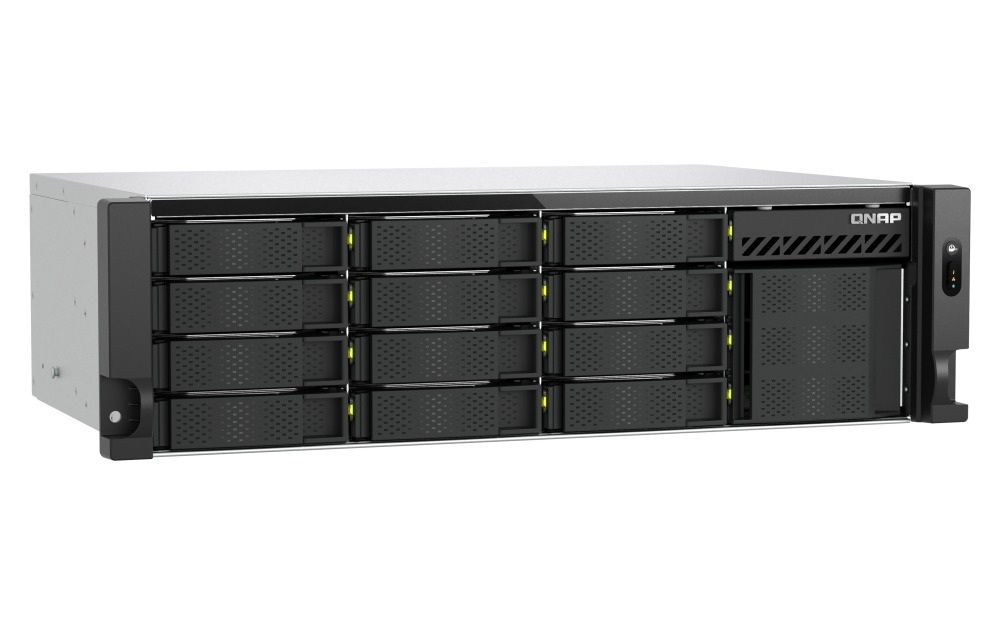 TS-h1655XeU-RP 10GbE NAS nabízí vysoký výkon v kompaktním 3U šasi s krátkou hloubkou (29,6 cm/11,6 palce), což je ideální pro serverovny s omezeným prostorem. TS-h1655XeU-RP je poháněn 8jádrovým procesorem Intel a disponuje 12 3,5palcovými pozicemi SATA se 4 sloty E1.S/M.2 PCIe NVMe. Nabízí flexibilní hybridní úložiště pro náročné úlohy, jako je virtualizace (VMware a Hyper-V) a datově náročné aplikace. Redundantní napájecí zdroje navíc pomáhají zajistit spolehlivost systému pro bezproblémový provoz.