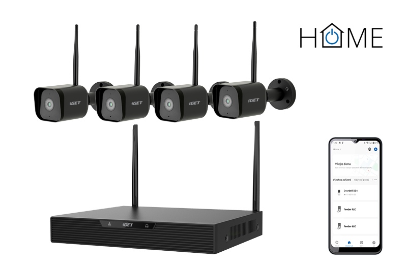 Bezdrátový kamerový Wi-Fi 2K+ (3MPx) systém iGET HOME NVR N4C4 (4-kanálový 3MPx rekordér NVR + 4 ks 3MPx barevných venkovních kamer s nočním viděním a detekcí pohybu a zvuku. Voděodolné kamery disponují odolností IP65, rozlišením 2K+ (2304 x 1296) a obousměrným přenosem zvuku. Rekordér má pozici pro HDD SATA, konektory LAN, USB, VGA, HDMI, komprese H.265, vzdálené online sledování + připojení k TV/monitoru. Aplikace si rozumí s Androidem i iOS, a můžete v ní sledovat veškeré kamery iGET HOME, ovládat zásuvky, vysavače, termohlavice, osvětlení a dalších více než 300 typů univerzálního příslušenství. Manuál i aplikace iGET HOME jsou kompletně v českém, slovenském, polském, maďarském a anglickém jazyce. Podpora OnViF.
