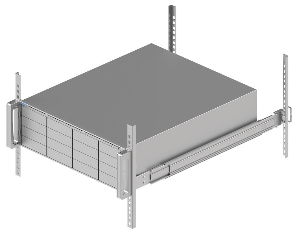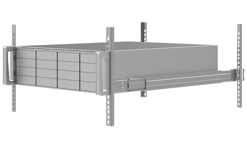 Úložné pozice: 16× 2,5"/3,5" HDD/SSD (typ CMR) + 2× rozšiřující sloty (podpora až 48 HDD/SSD celkem), min. 1TB, s 7200 ot./min.
