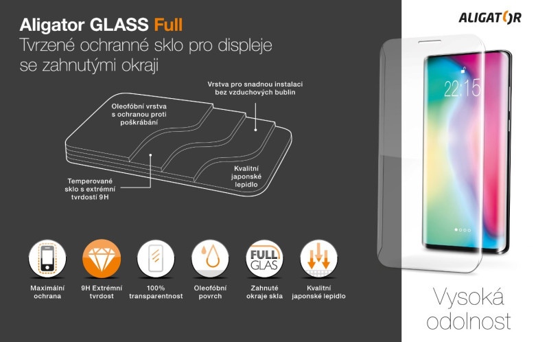 Ochranná skla Aligator Glass tlumí nárazy na displej a tím ho chrání, při nárazu se neroztříští, ale vytvoří pavučinu jako automobilová skla a rozprostře energii nárazu.