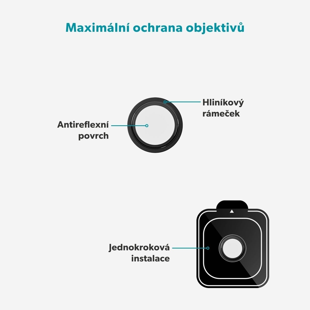 Dopřejte svému iPhonu dokonalou ochranu fotoaparátu díky Aluminium Lens Protectors. Tato ochrana objektivů s hliníkovými rámečky účinně chrání objektivy před poškrábáním a nárazy, takže se nemusíte obávat opotřebení z každodenního používání. Speciální antireflexní povrch zajišťuje, že vaše fotografie i videa budou vždy ostré a kvalitní za všech podmínek.