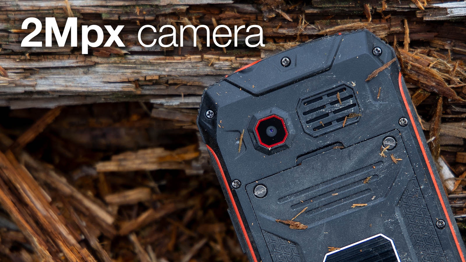 Součástí výbavy odolného telefonu je 2 Mpx fotoaparát, výkonná LED svítilna nebo vestavěné FM rádio s integrovanou anténou a automatickým laděním stanic. Z další výbavy můžete využít například kalendář, budíky nebo kalkulačku.