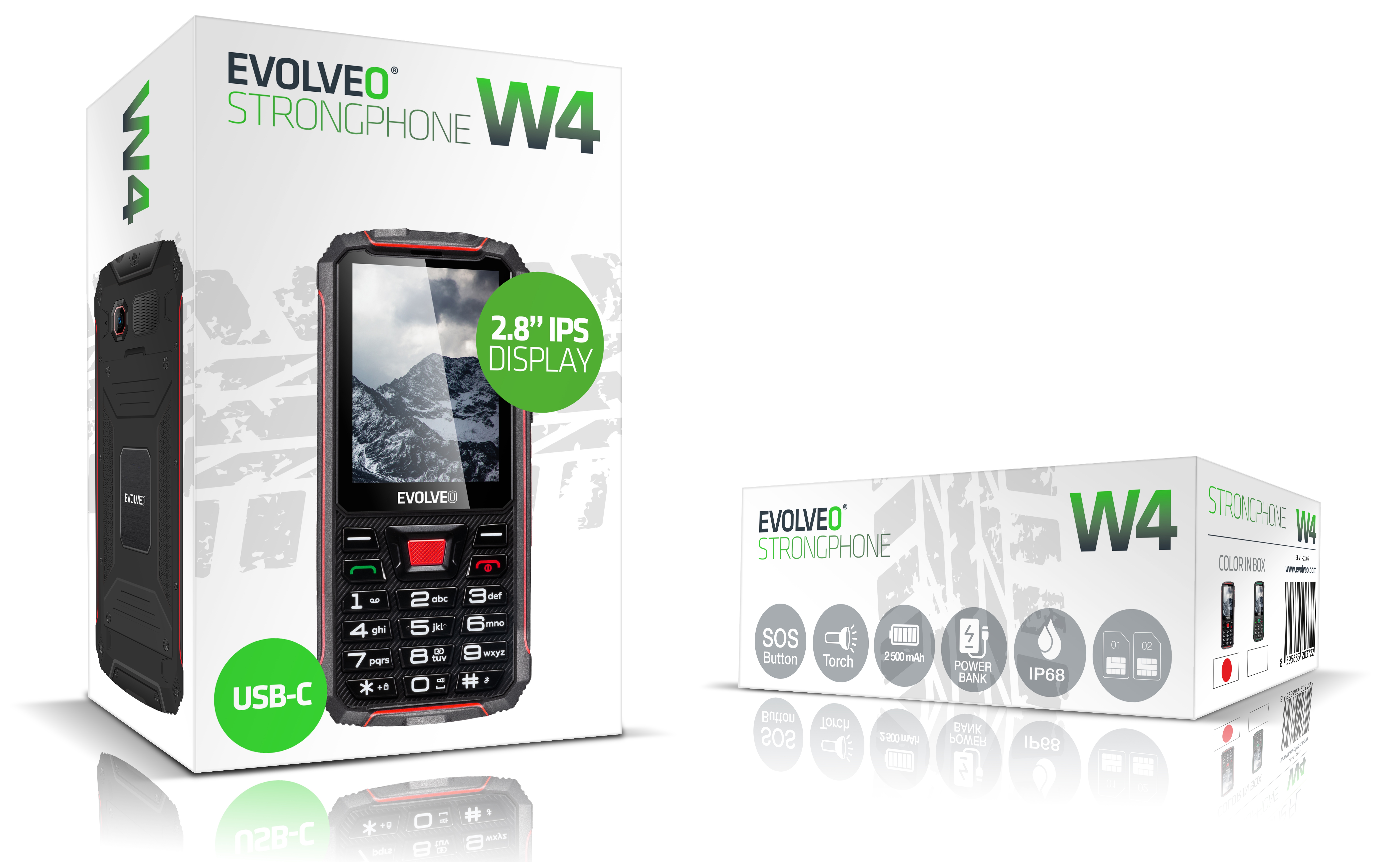 • EVOLVEO StrongPhone W4, vodotěsný odolný Dual SIM telefon, černo-zelený (PartNo: SGP-W4-BG)