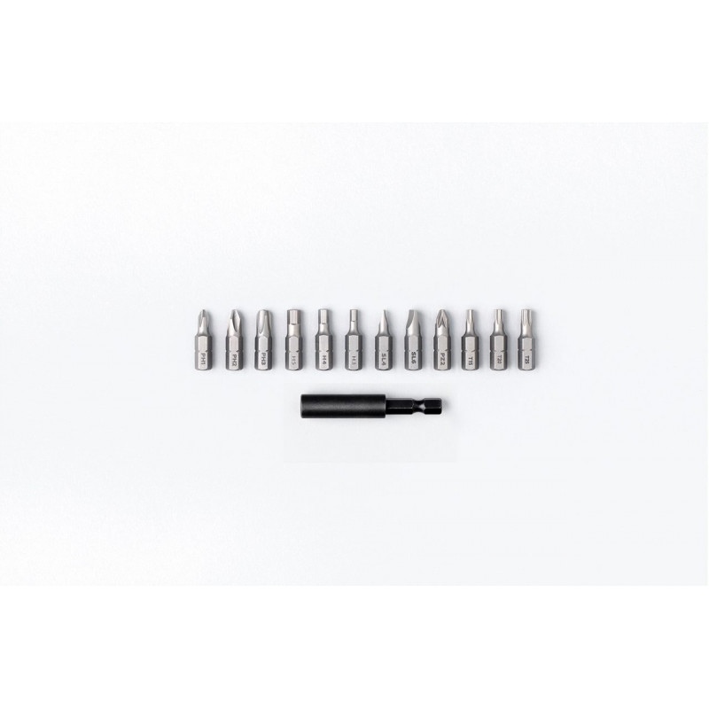 Bity: C6.3 x 25mm, PH11, PH2, PH3, H3, H41H5, SL4, SL6, T15, T20, T25, PZ2, prodlužovací adaptér 60 mm
