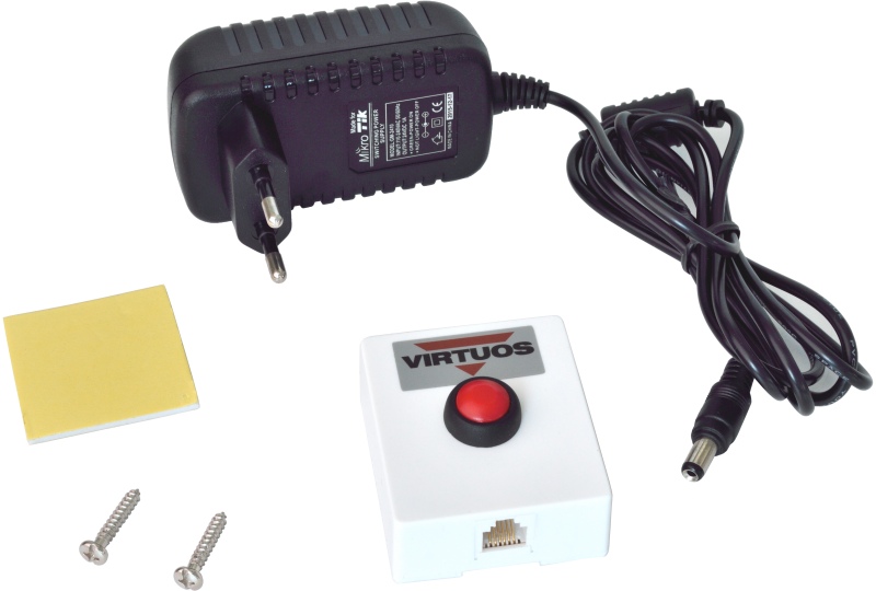 Tlačítko slouží k otvírání pokladních zásuvek bez nutnosti použití pokladního systému. Součástí dodávky je napájecí zdroj 24V, oboustranně lepící polštářek a šroubky pro upevnění k pracovní desce. Pro připojení k pokladní zásuvce je tlačítko osazeno konektorem RJ12-6p6c. Pokladní zásuvky s napevno instalovaným propojovacím kabelem lze přímo připojit.