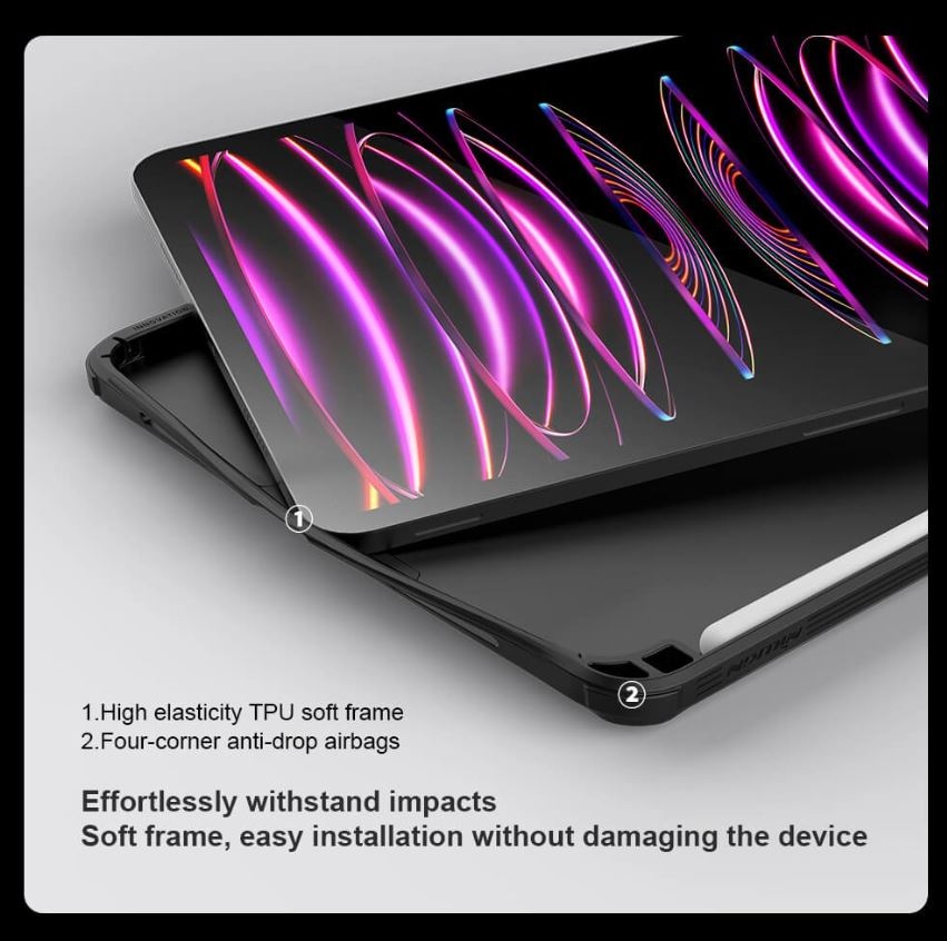 CamShield Pad zadní kryt je multifunkční kryt navržený pro tablety, který spojuje styl, ochranu a praktické funkce do jednoho.