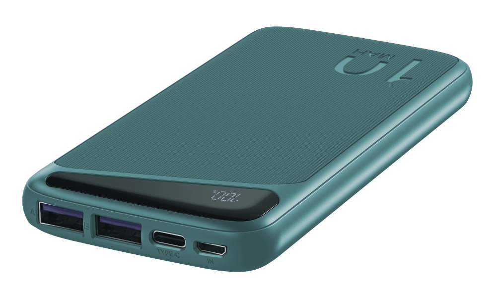 Powerbanka monitoruje výkon a kapacitu baterie připojených zařízení, nezávisle rozděluje tok energie a zajišťuje rovnoměrné nabíjení a ochranu nabíjených zařízení před přetížením. Tělo přístroje je vyrobeno z odolného plastu. Jeho povrch je odolný proti poškrábání a oděru. Díky kompaktní velikosti 140x69x15.5 mm a nízké hmotnosti 220 gramů se externí baterie snadno vejde do kapsy batohu nebo tašky. Přenosná baterie PWR10 MX GREEN bude věrným pomocníkem na výletě, na pikniku v přírodě atd.