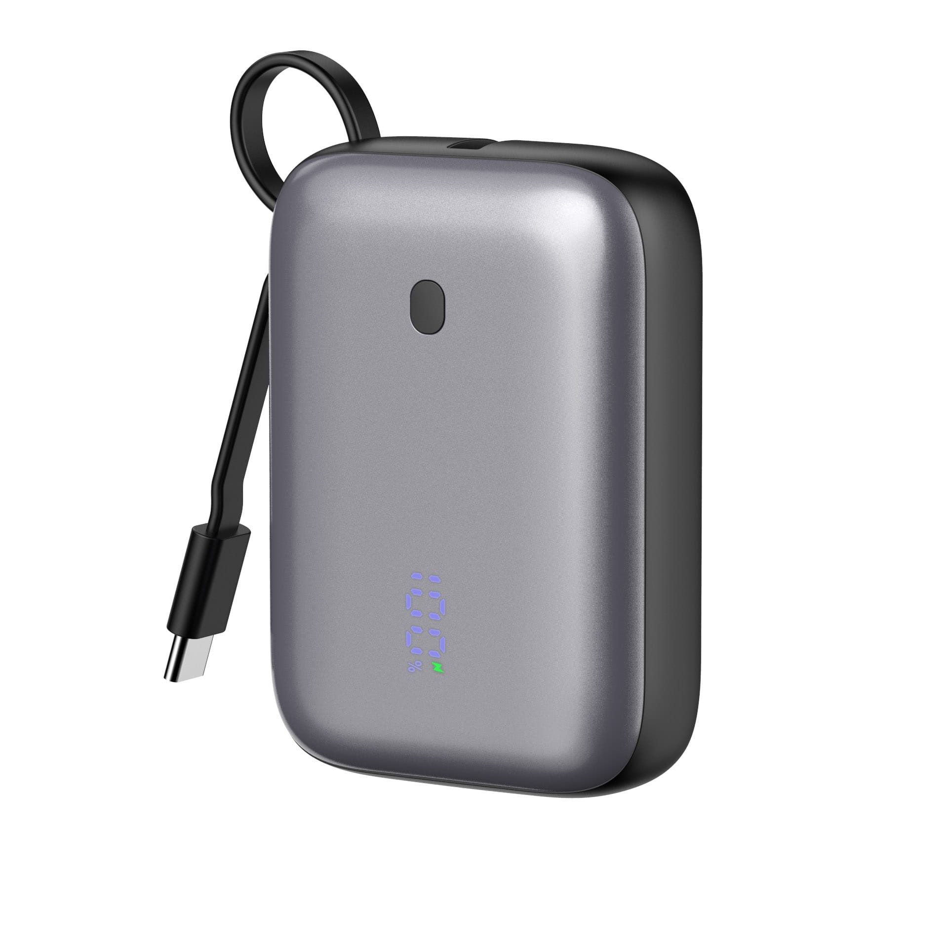 Powerbanka má integrovaný USB-C kabel, takže se nemusíte obávat, že jste jej zapomněli doma nebo v autě.