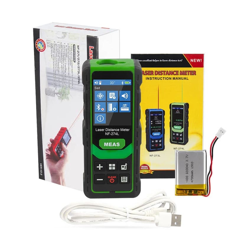 Laser metr WSNF274L pro připojení k telefonu, vdzálenost 80m, hlas, plocha, objem, plocha trojůhelníků, nepřímé měření, sčítání, odčítání, volitelné jednotky, pamět na 99 hodnot, automatické vypnutí, IP54, dobíjecí baterie