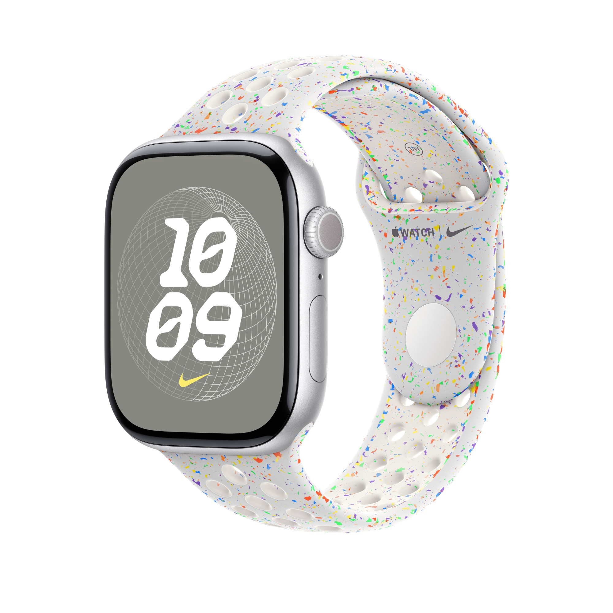Tenhle sportovní řemínek Nike má vylisované otvory pro větší vzdušnost, je odolný, pevný a přitom krásně poddajný. Obsahuje barevné vločky vytvářející náhodné vzory, takže každý řemínek je originál. Jeho hladký, hutný materiál se elegantně ovine kolem zápěstí a příjemně sedí. A nově se zapíná na hliníkový kolíček s matným povrchem.