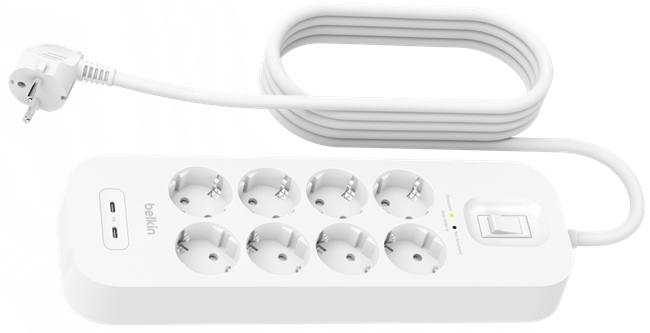 Přepěťová ochrana se 2 USB-C porty (8 zásuvek + 2 USB-C)