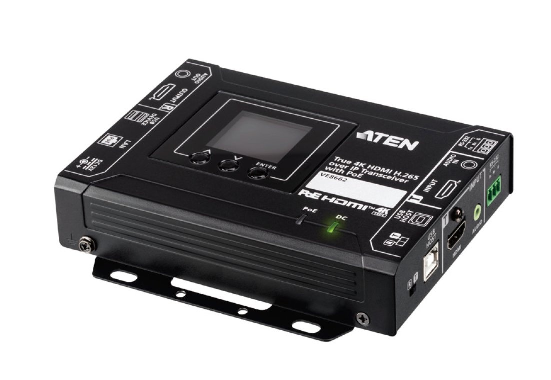 ATEN VE8662 True 4K HDMI H.265 over IP transceiver s PoE kombinuje funkce vysílače a přijímače v jedné jednotce, která nabízí flexibilní nasazení a snadnou konfiguraci pro různá AV řešení.