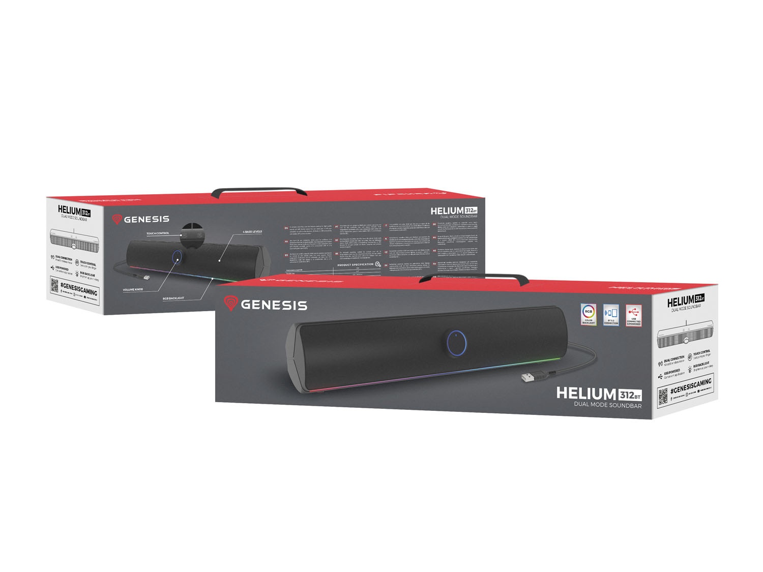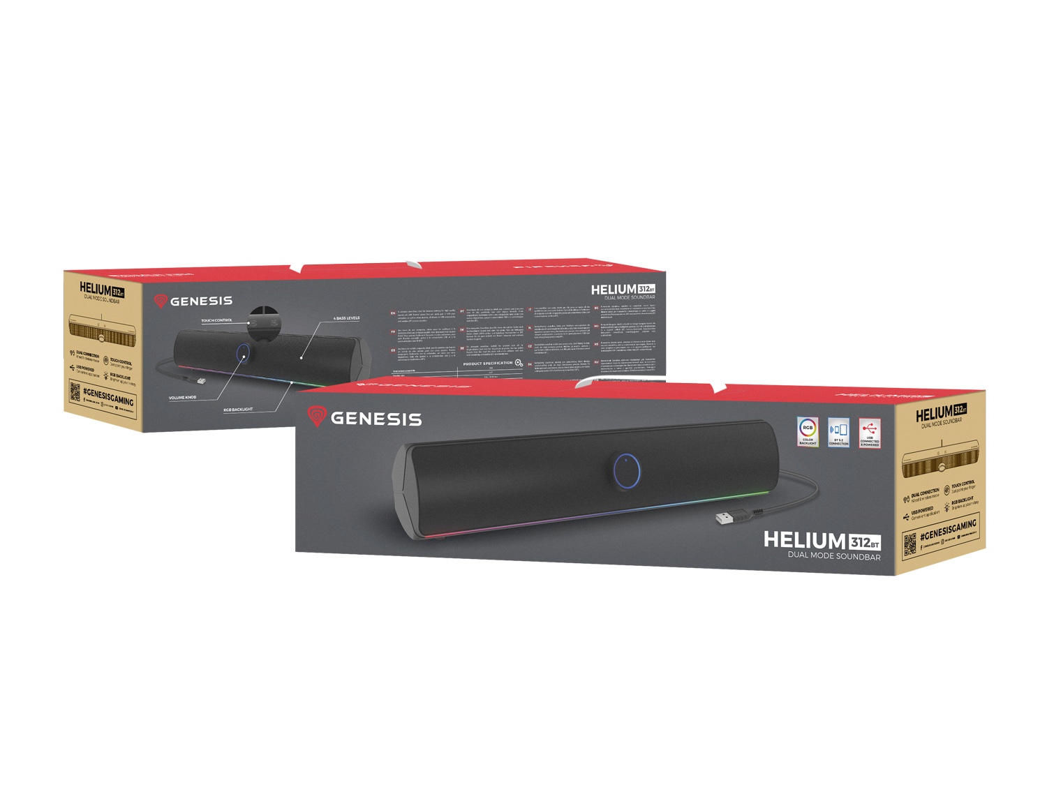Se soundbarem GENESIS Helium 312 BT se nejen ponoříte do své oblíbené hudby, ale také rozsvítíte svůj herní koutek. Díky klasickému barevnému provedení a designu snadno dotvoříte skvělou jak herní, tak poslechovou atmosféru. Umožní vám to i RGB podsvícení, které můžete v případě potřeby snadno vypnout.