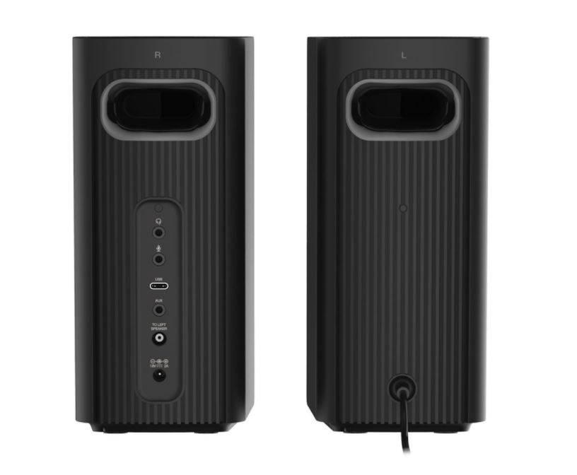Reproduktorový systém Creative T60 především nabízí celou škálu možností připojení. Kromě zvuku USB-C pro herní konzole obsahuje integrované konektory pro připojení sluchátek a mikrofon, když se potřebujete zúčastnit online pracovního hovoru. Dále je tu praktické a snadno přístupné tlačítko pro přepínání reproduktorů a sluchátek. Nejvyšší čas posunout úroveň výchozího počítačového zvuku někam dál.