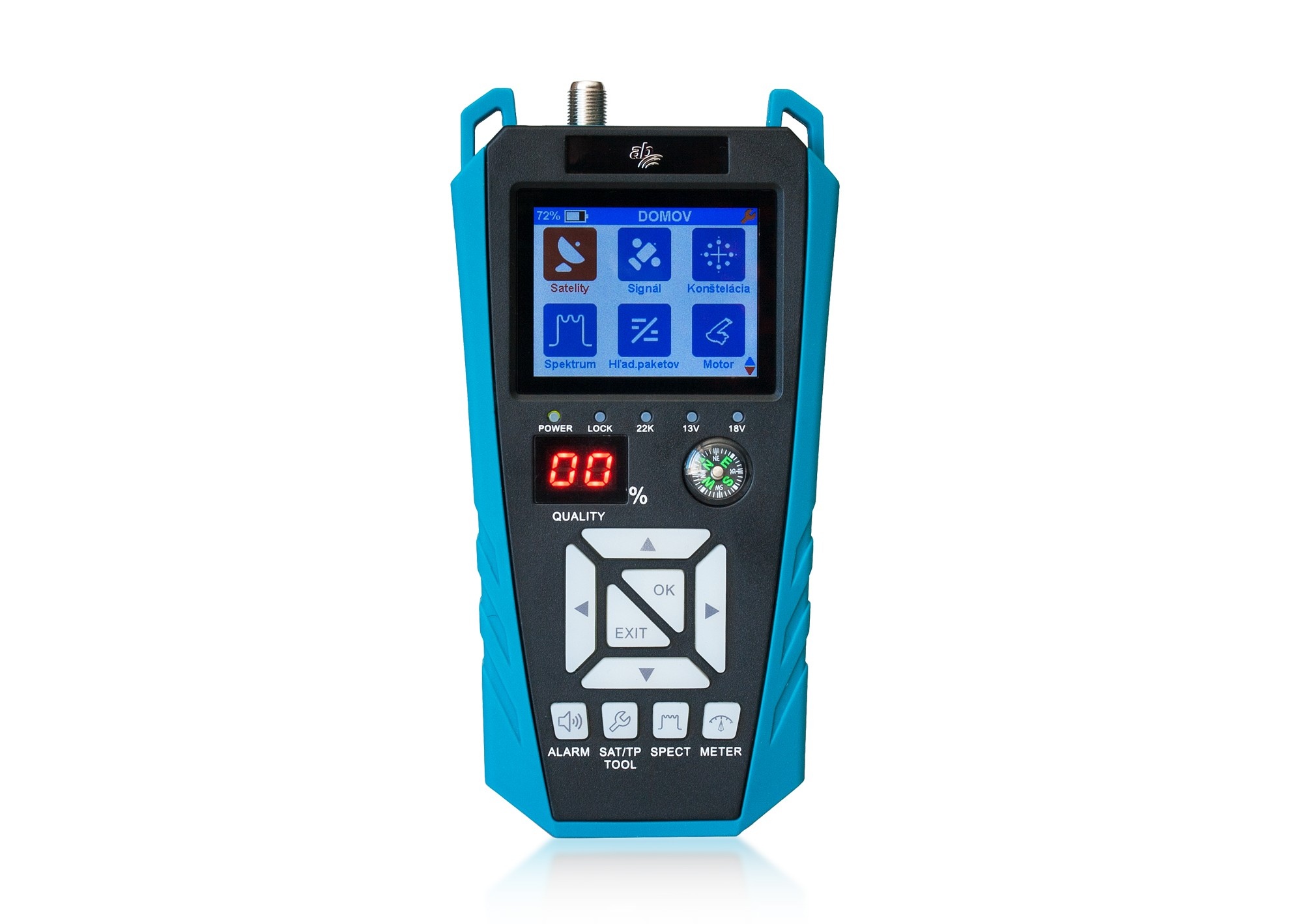 AB CryptoBox Meter je merací prístroj pre satelitné vysielanie, ktorý je jednoduchý na používanie a za bezkonkurenčnú cenu na trhu. Podporuje HD normu satelitného vysielania DVB-S / DVB-S2. Možnosť merania: Sila signálu, kvalita signálu, SNR, PWD, BER, kompas, plus zobrazuje konštalačný diagram a spektrálny analyzér. Meranie DiSEqC prepínačov a DiSEqC motorov. (DiSEqC 1.0, 1.1, 1.2 a USALS) , zvukový indikátor signálu. Zabudovaný 2,4" farebný LCD displej. Rýchlo nabíjateľná LI-ION batéria s výdržou 2,5 hodín (1800 mA). Jednoduchý na nosenie v pogumovanom púzdre. Príslušenstvo: Púzdro, napájací zdroj (nabíjačka) 230V, F-redukcia.