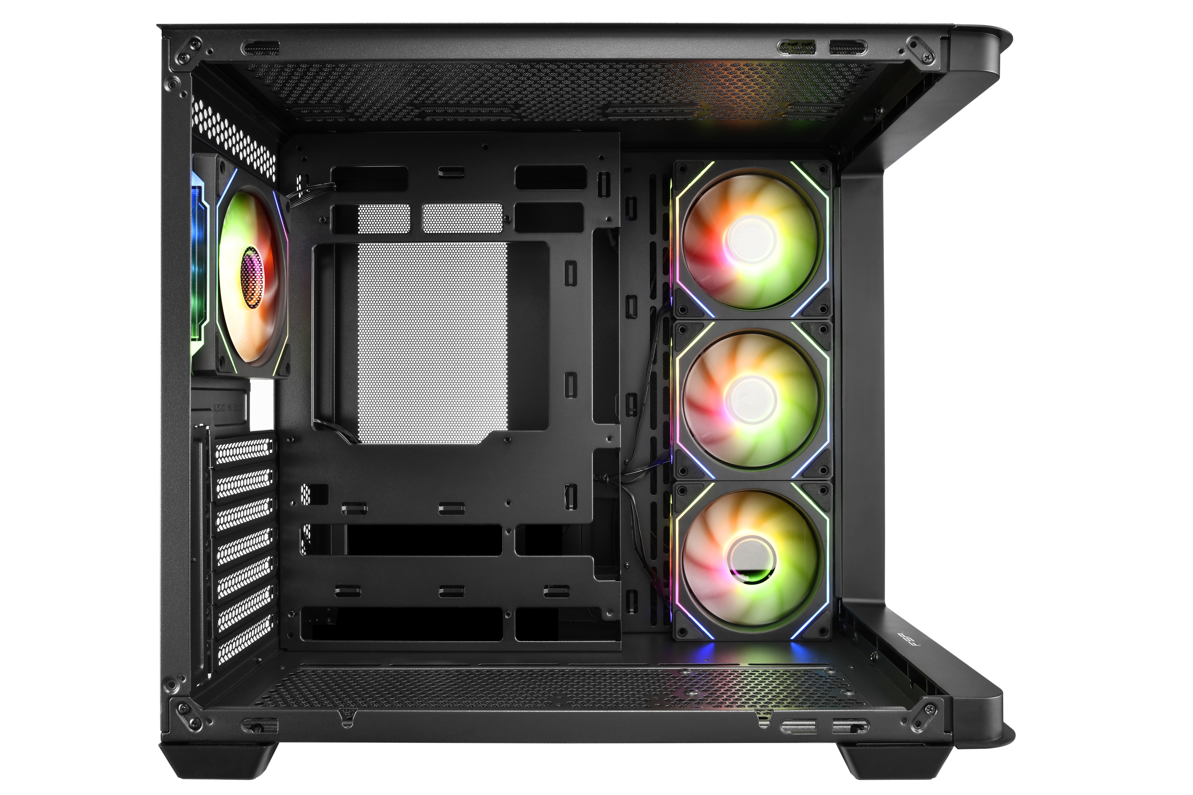Boční strana: 3× 120mm reverzní ventilátor Daisy-Chain ARGB s PWM regulací