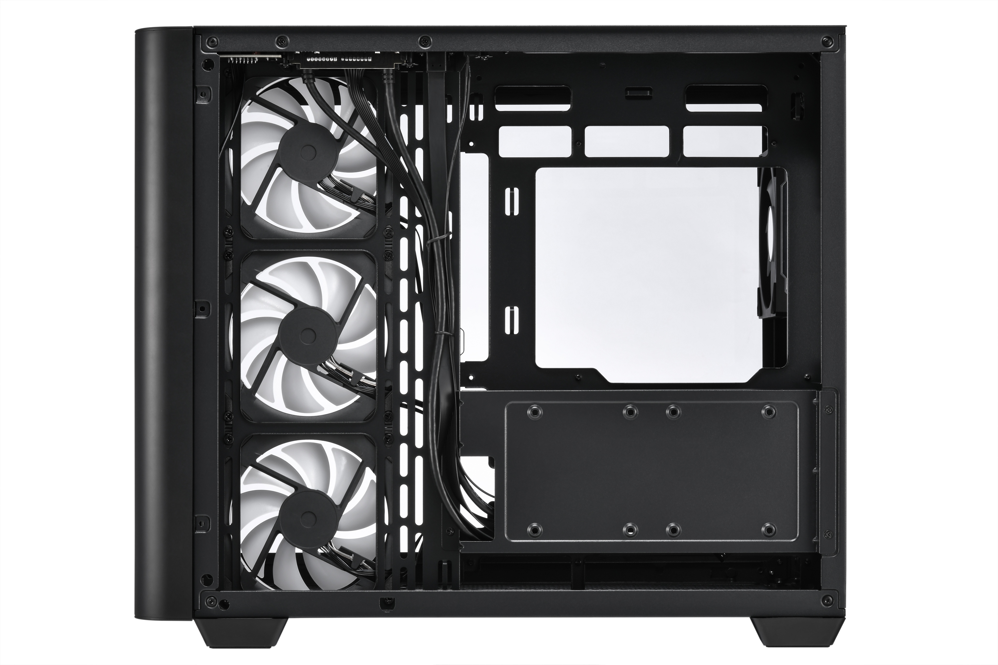 Boční strana: 3× 120mm reverzní ventilátor Daisy-Chain ARGB s PWM regulací