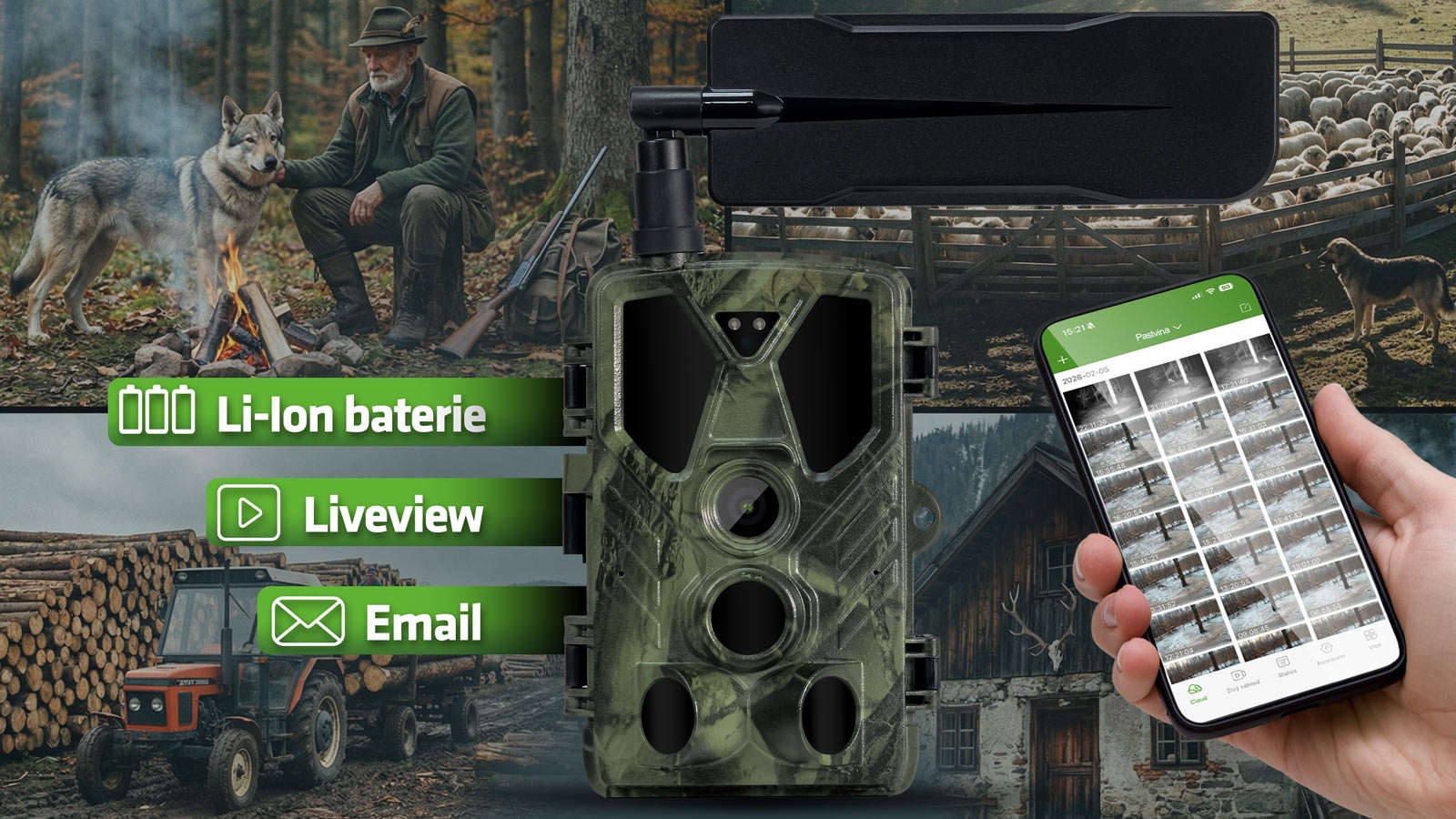 Velkou výhodou je také funkce Live View (živý náhled), díky které můžete kdykoliv na dálku zobrazit aktuální obraz z fotopasti. To se hodí nejen pro kontrolu situace v reálném čase, ale i pro správné nastavení pozice a úhlu snímání při instalaci, takže máte jistotu, že kamera zabírá přesně to, co potřebujete. To ocení nejen běžní uživatelé, ale i firmy nebo pokročilí uživatelé, kteří chtějí mít plnou kontrolu nad daty i samotným nastavením zařízení. Kombinace těchto možností dává zařízení maximální univerzálnost – od jednoduchého použití až po profesionální nasazení.