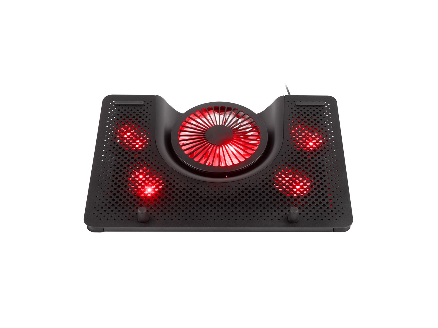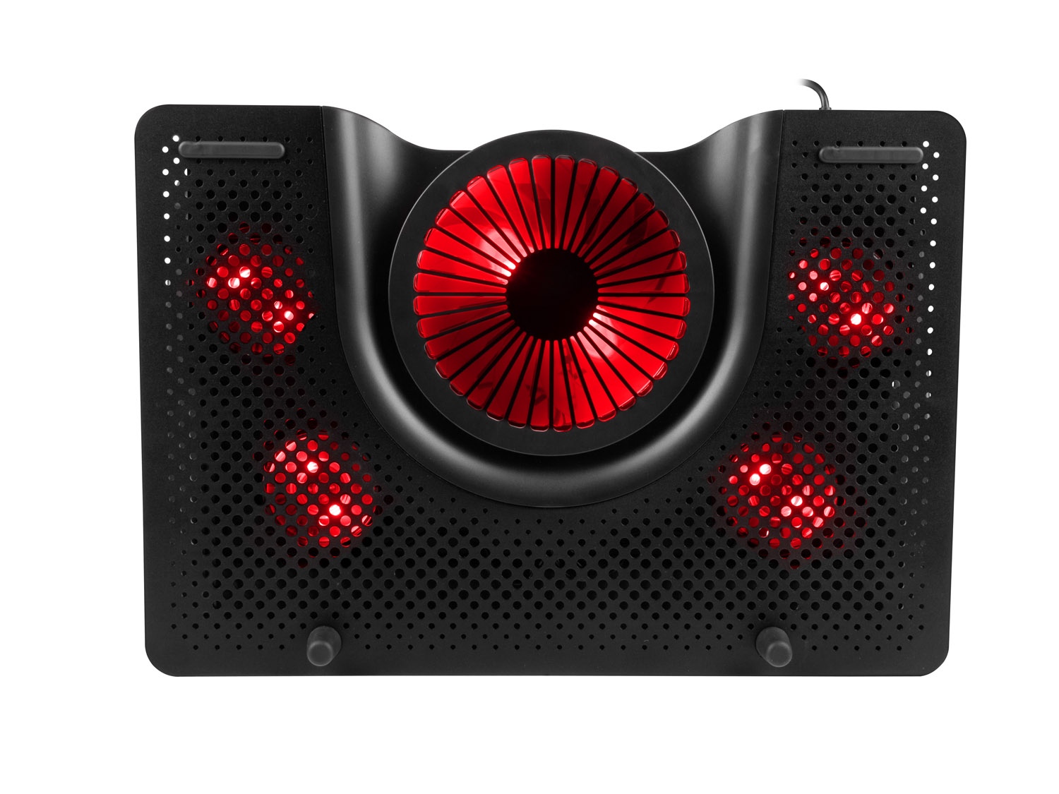 Chladicí systém podložky Oxid 550 je unikátní tím, že jeden velký ventilátor vhání studený vzduch do střední části notebooku a čtyři menší ventilátory umístěny na krajích odsávají teplý vzduch ven, což zajišťuje vynikající cirkulaci a vysokou efektivnost.
