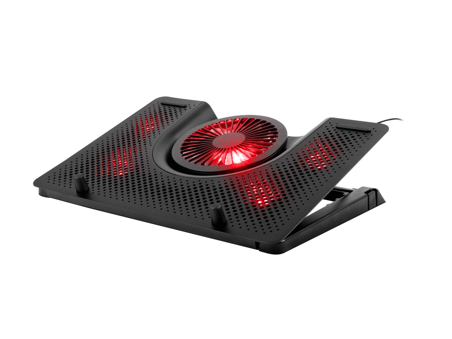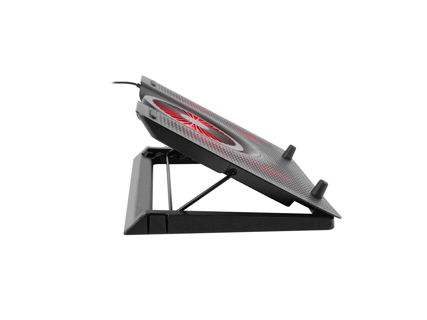 Podložka navíc obsahuje možnost nastavení úhlu sklonu v pěti úrovních, díky čemuž si můžete notebook nastavit v té nejpohodlnější poloze a zvýšit tím nejen komfort používání, ale i efektivnost cirkulace vzduchu. Podložka obsahuje gumové nožičky, které zabraňují přesouvání po stole.